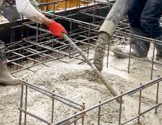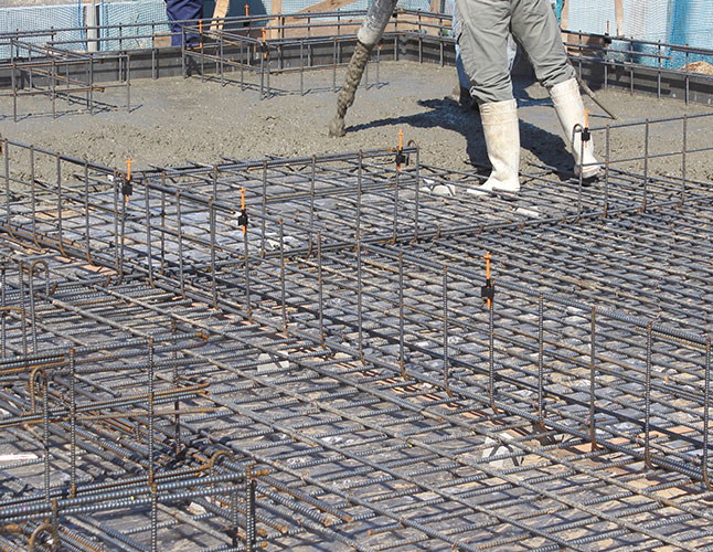 基礎業者が質の高いコンクリートの仕上がりを実現するために、正しいバイブレーターの掛け方を学びます。 型枠内に打ち込んだコンクリートを均質に充填させるために、振動機(バイブレーター)で振動を与えて内部の気泡・水分を追い出して締固め作業をします。バイブレーターは正しい角度で生コンクリートに差し込み、適切な間隔を保って作業することによって品質の高いコンクリートの仕上がりになります。